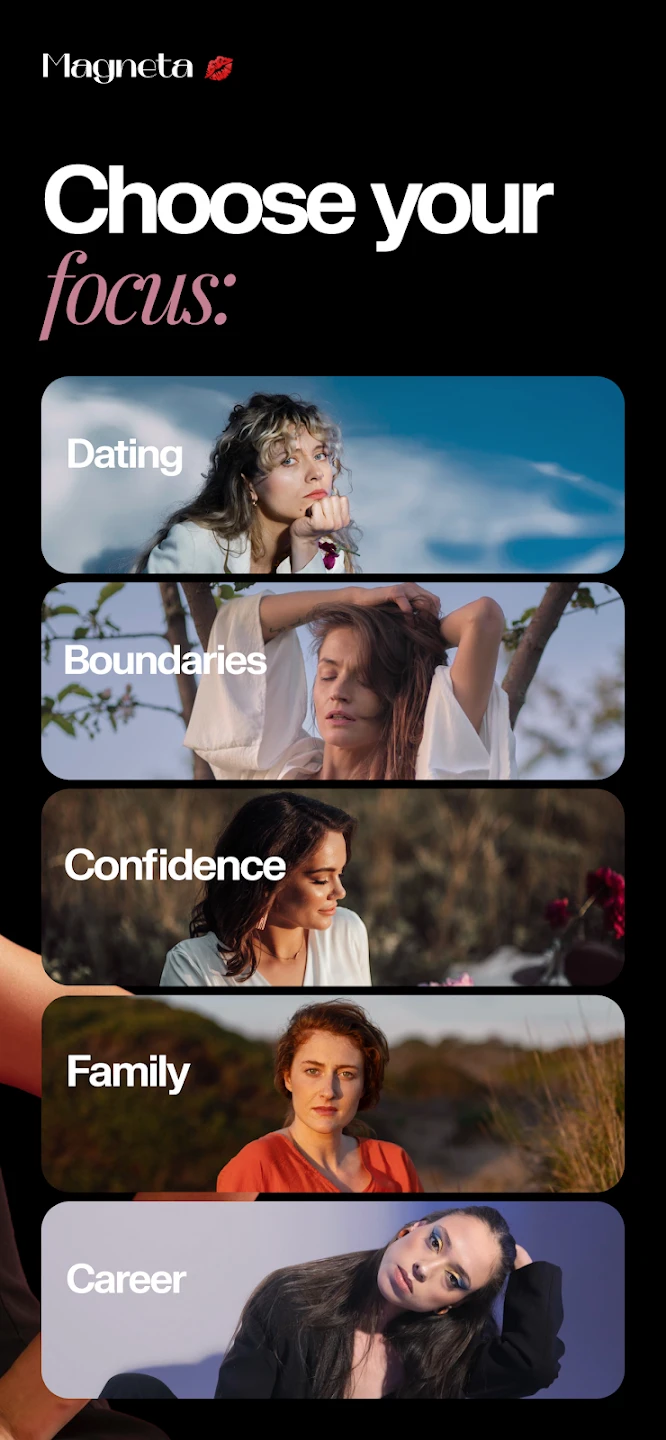 Whether you want to set better boundaries, feel more confident in relationships, or reconnect with your natural energy, Magneta meets you where you are and helps you grow.